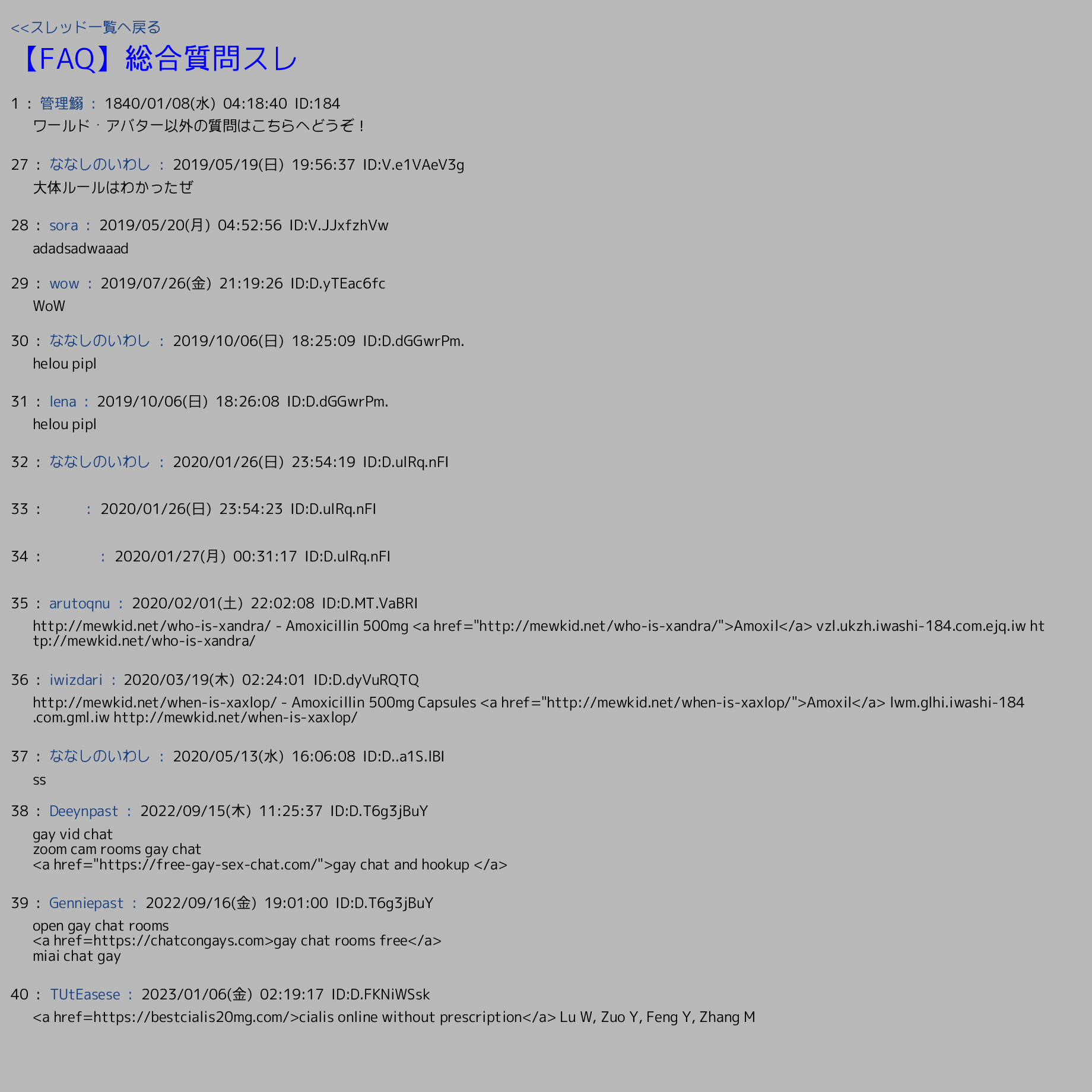 | 画像 | 【FAQ】総合質問スレ | 管理鰯 | 1840/01/08(水) 04:18:40 | 40 | 413 |