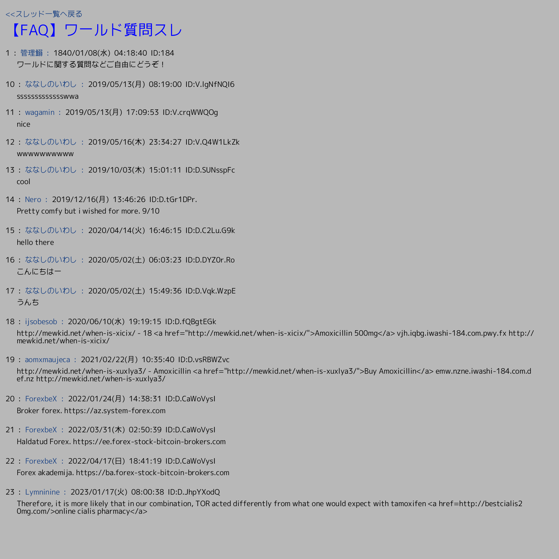 | 画像 | 【FAQ】ワールド質問スレ | 管理鰯 | 1840/01/08(水) 04:18:40 | 23 | 240 |