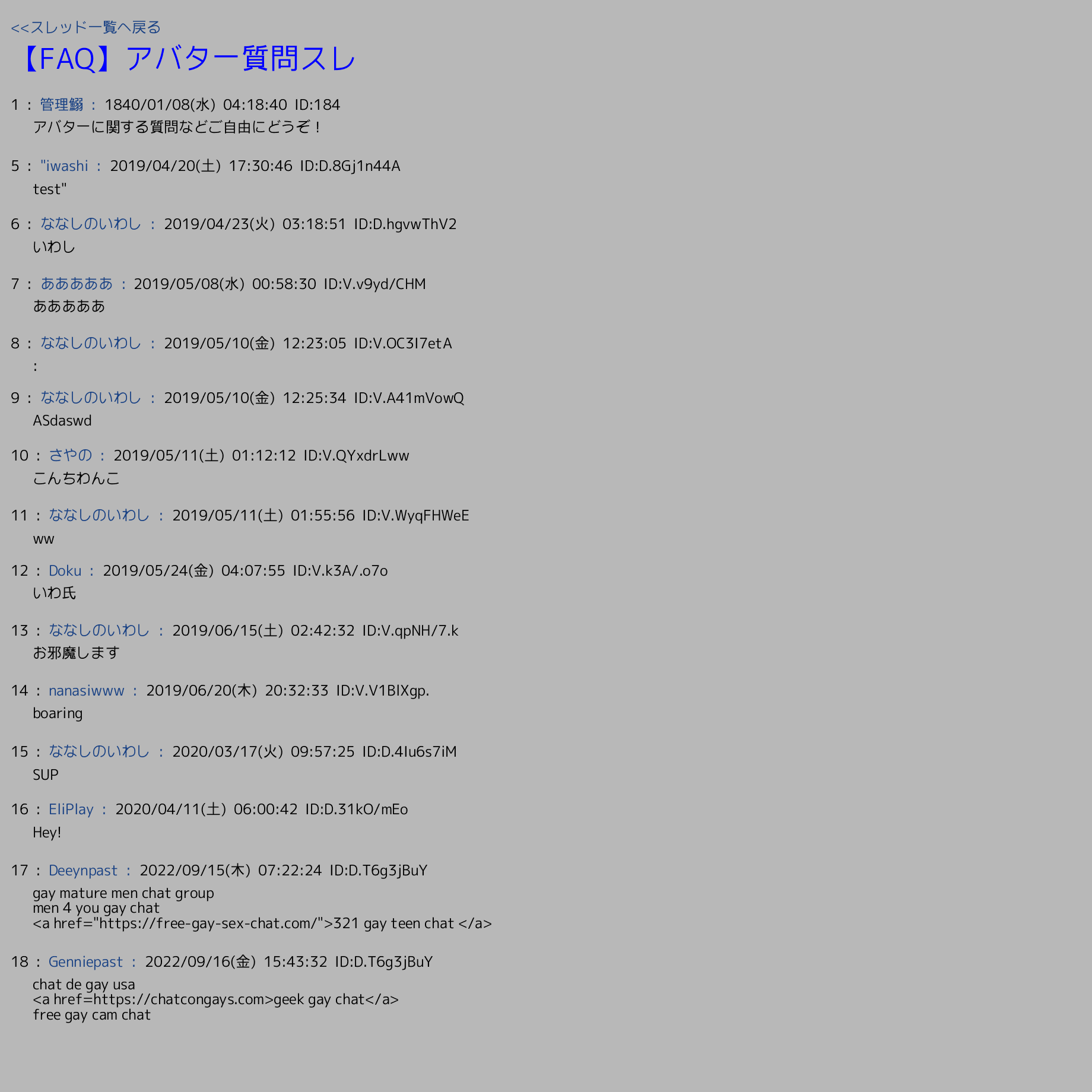 | 画像 | 【FAQ】アバター質問スレ | 管理鰯 | 1840/01/08(水) 04:18:40 | 18 | 222 |